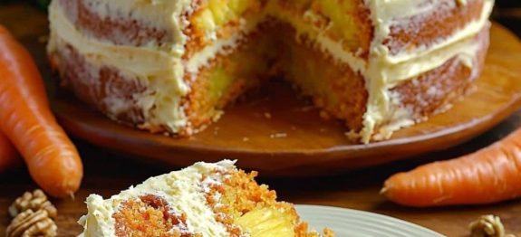 Bolo de cenoura e abacaxi com cobertura de cream cheese
