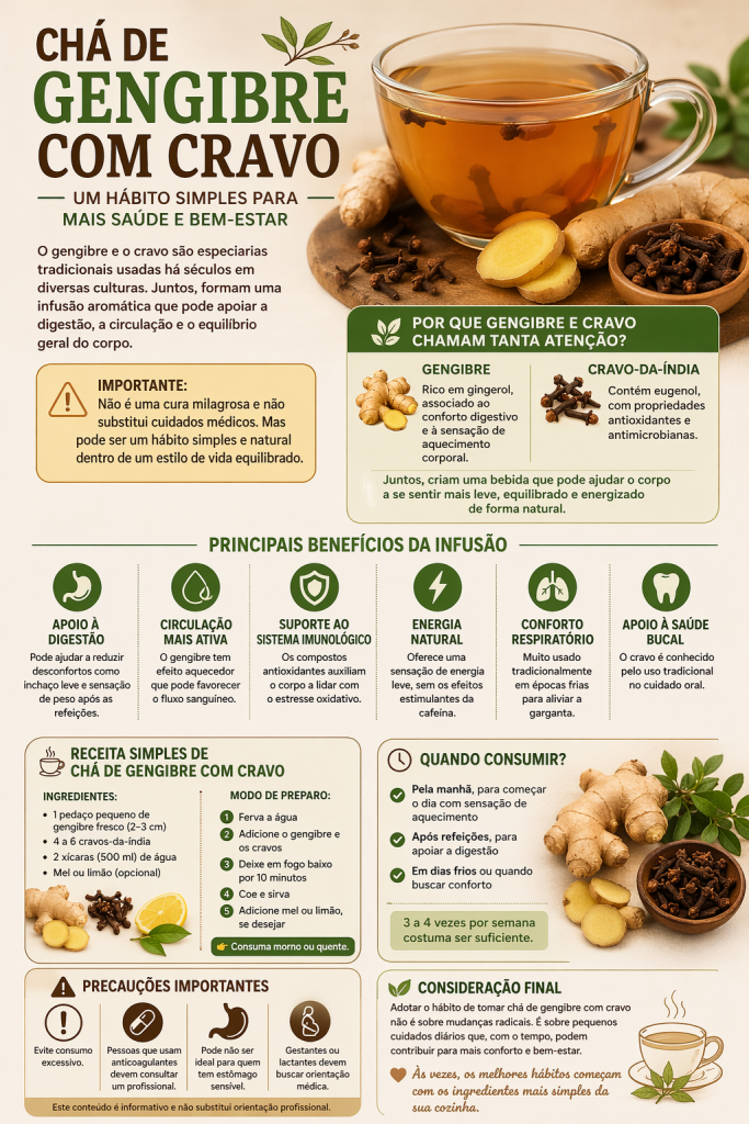🫖 Receita Simples de Chá de Gengibre com Cravo