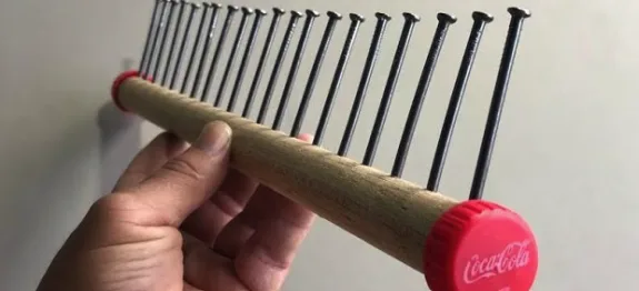 - Insira os pinos (cabos de vassoura) nos furos da ripa.